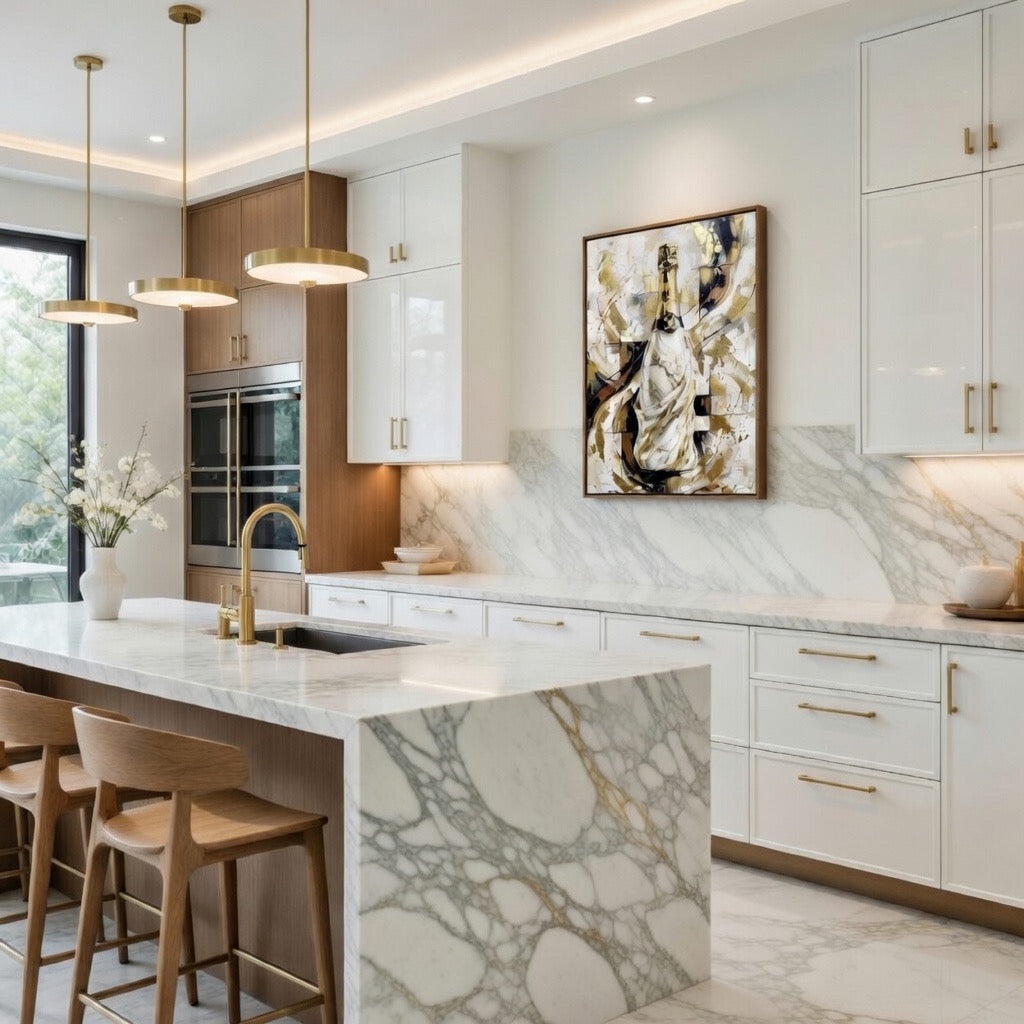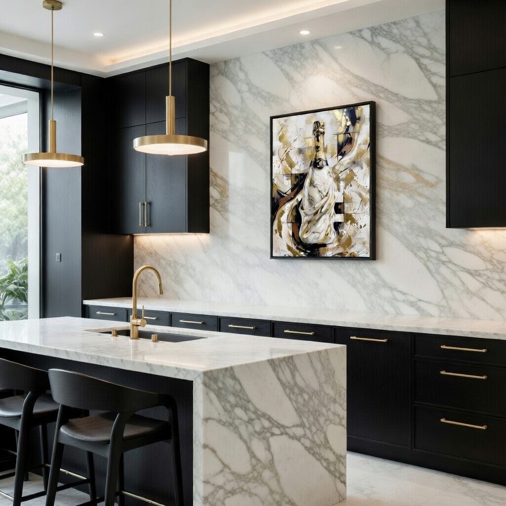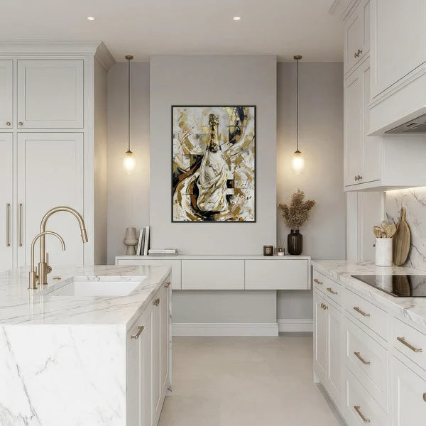 The fusion of pristine white marble and shimmering gold creates a sophisticated palette that enhances modern interiors, while the flowing, melting form adds energy and intrigue. Every detail exudes elegance, turning the artwork into a statement of timeless luxury.