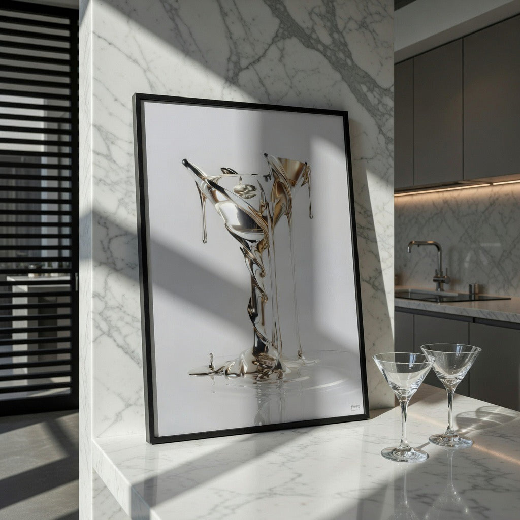 Raise a glass to bold design! This striking artwork features a melting martini glass brought to life with fluid, dynamic artistry, making it an instant conversation starter.