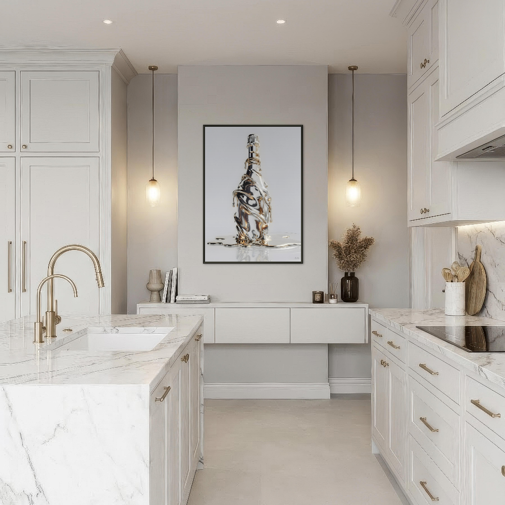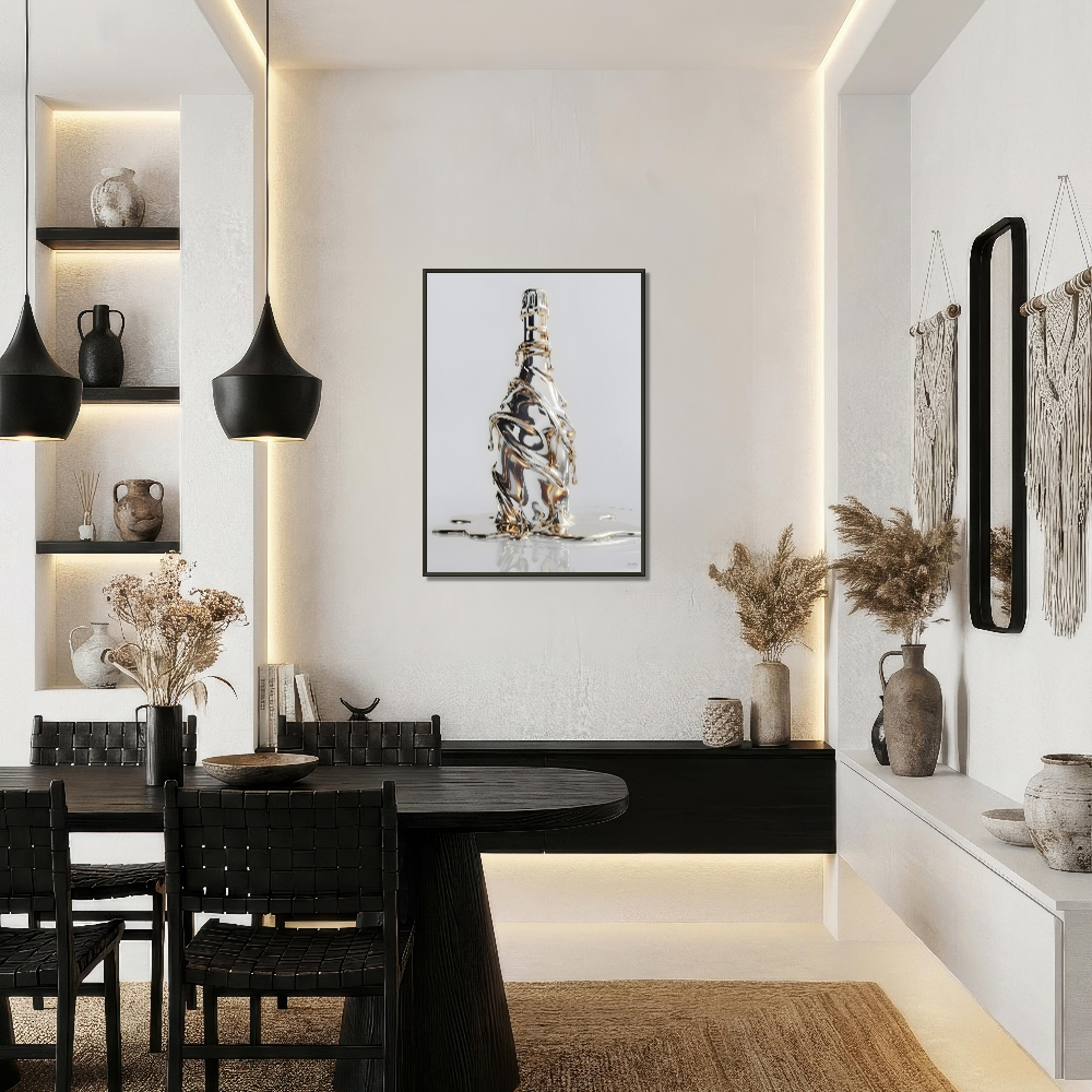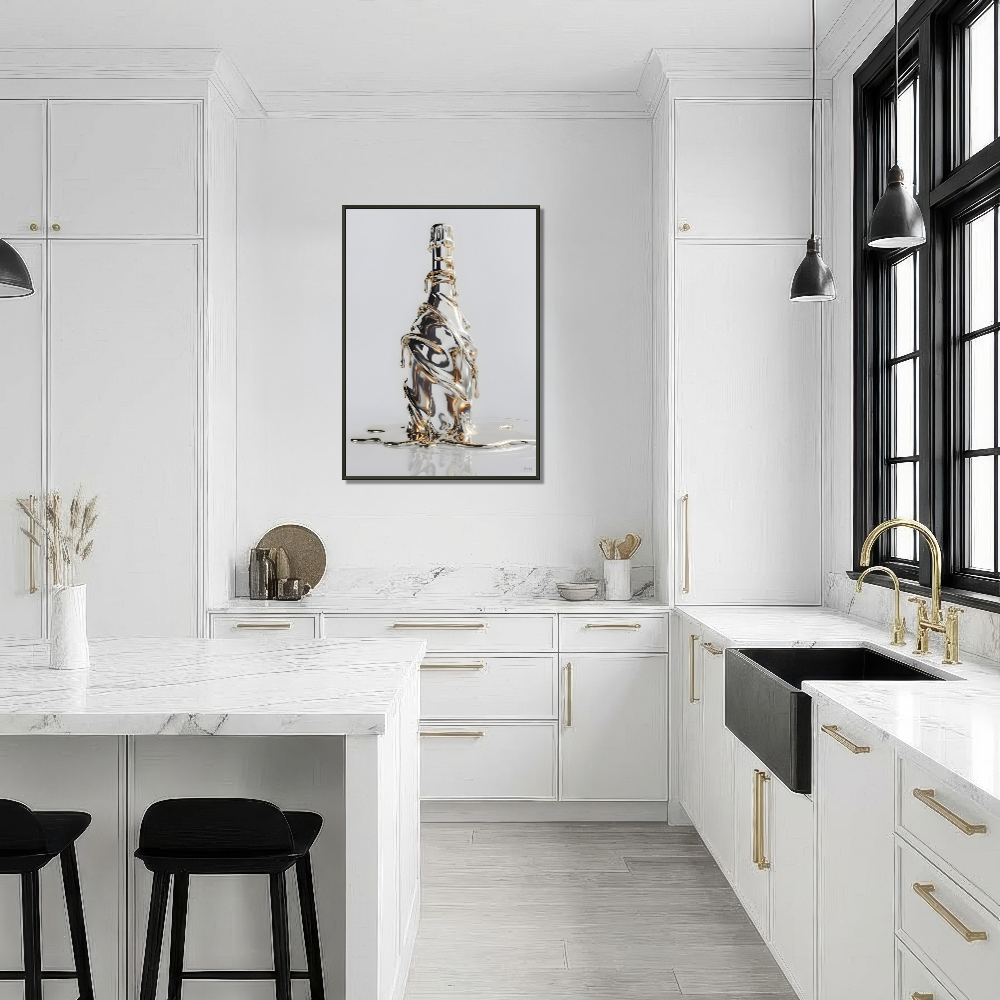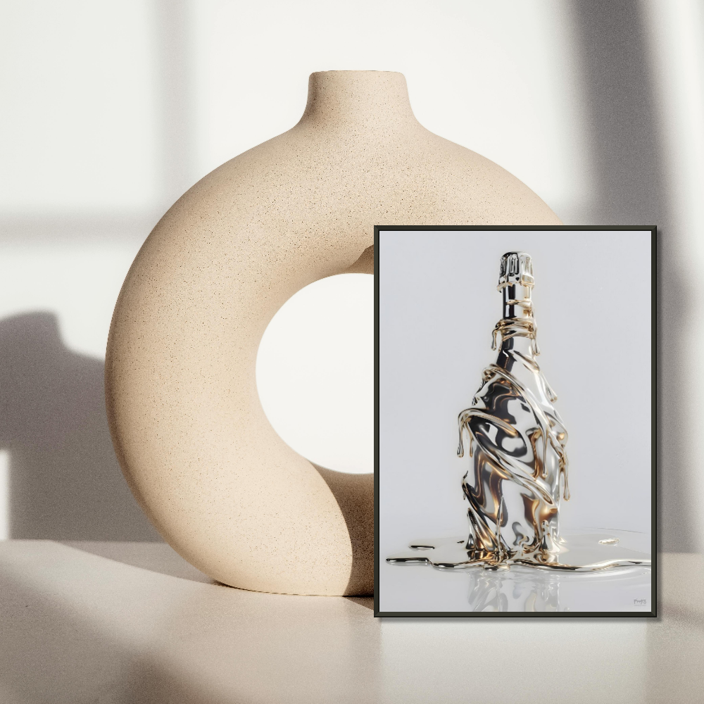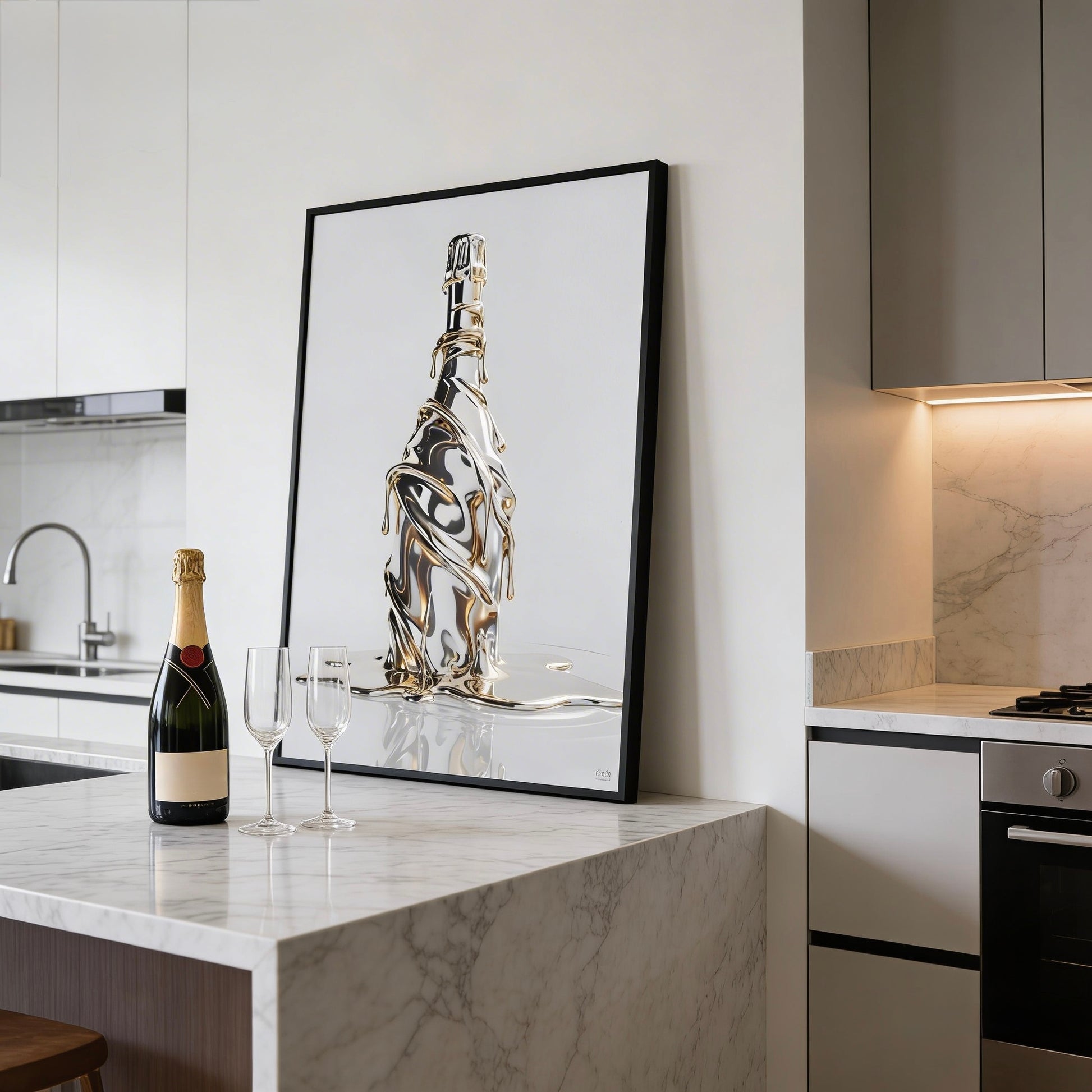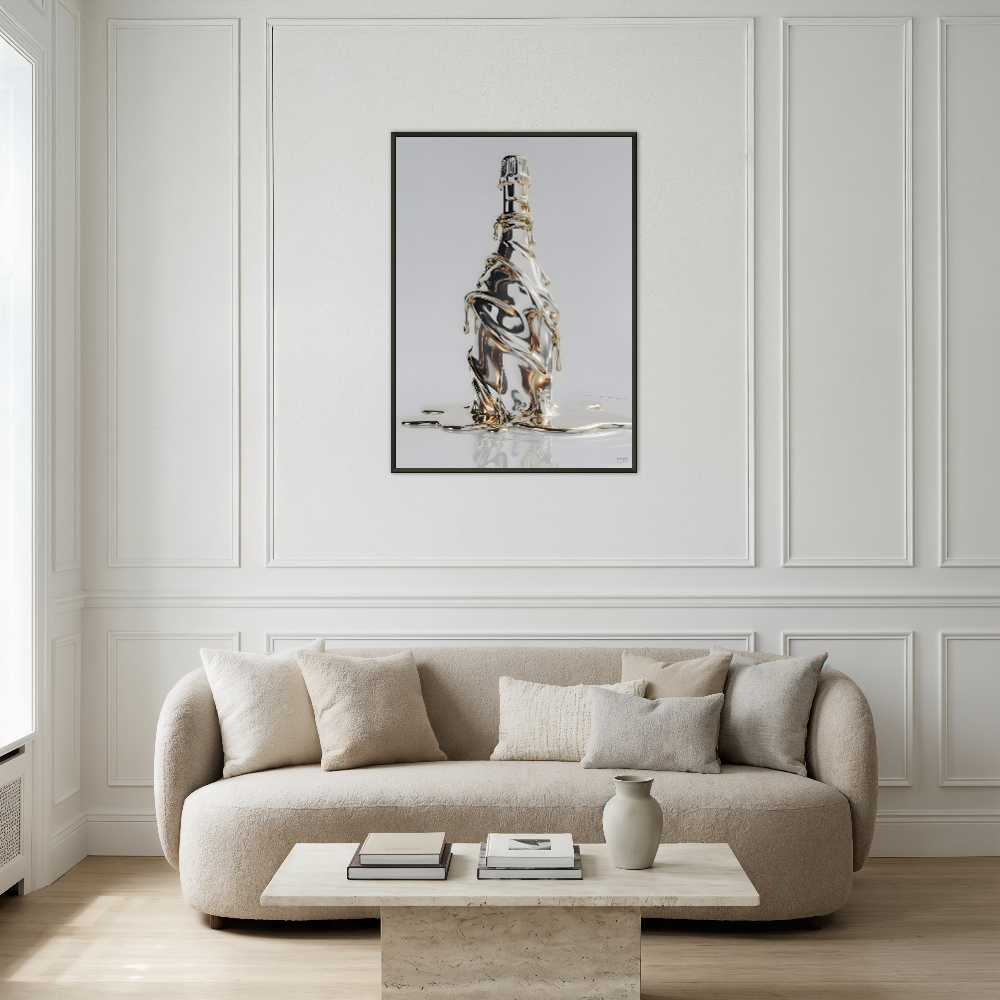 Raise a bottle to bold design! This striking artwork features a melting bottle of champagne brought to life with fluid, dynamic artistry, making it an instant conversation starter.